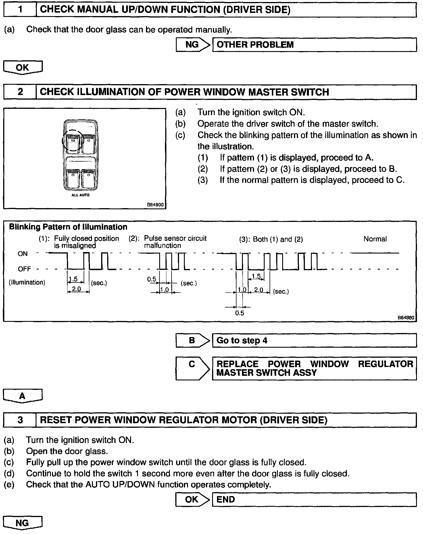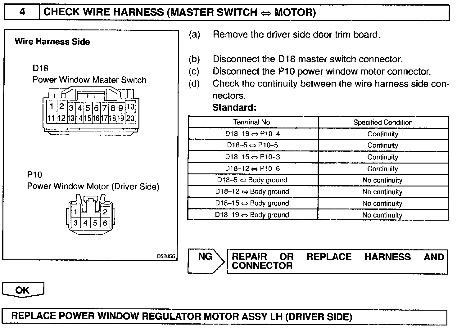 - There is an open or short circuit in the wiring between the power window switch and the corresponding power window motor.