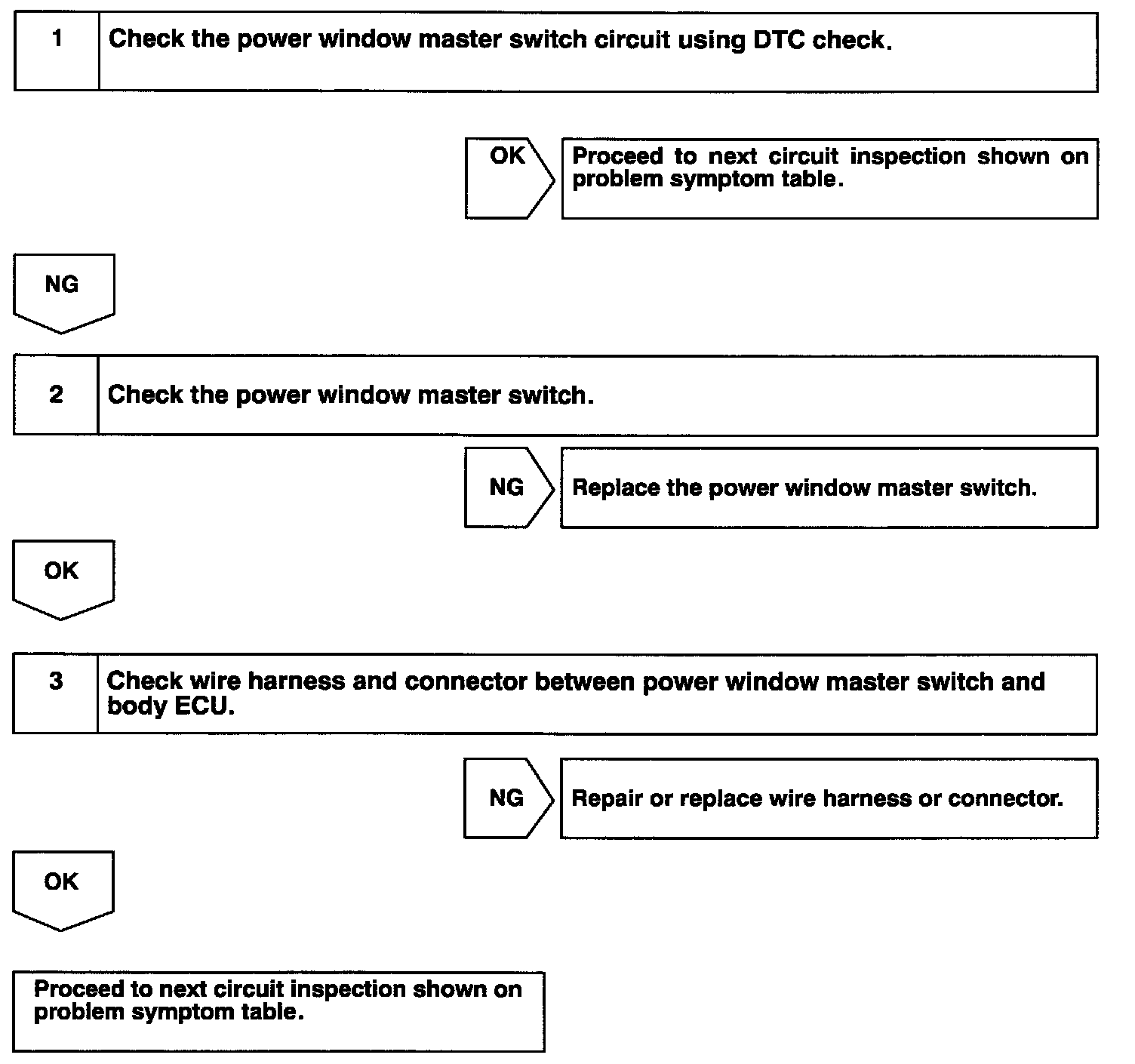 Power window master switch circuit can be checked using DTC check.