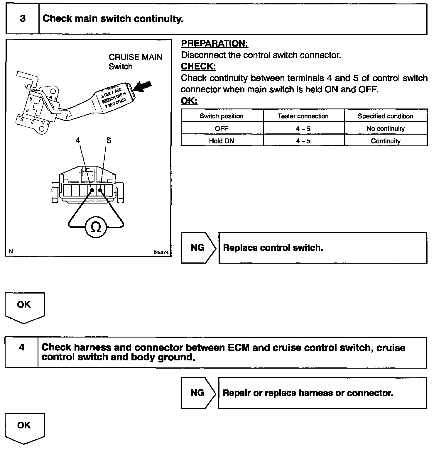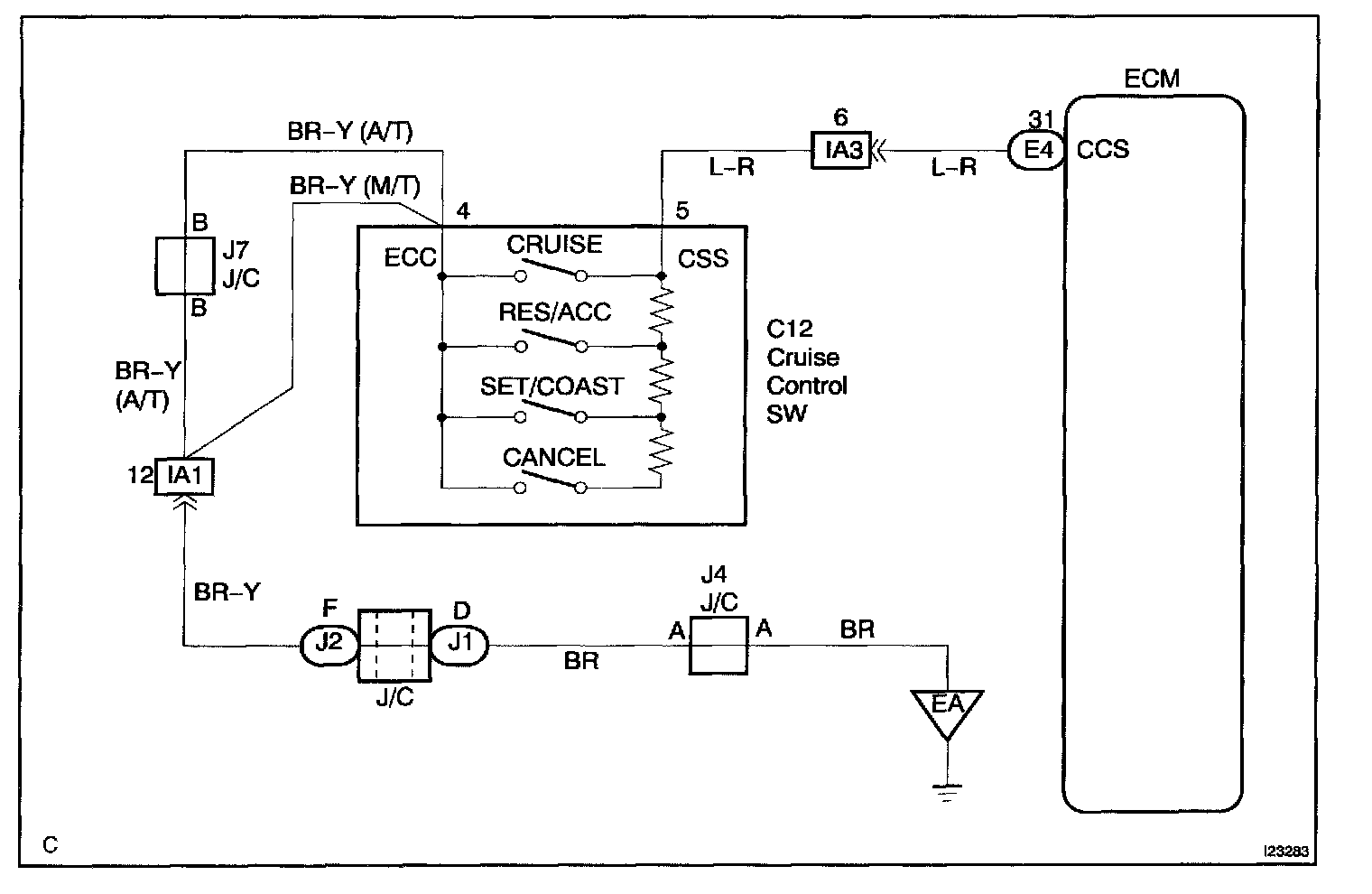 This circuit carries the SET/COAST RESUME/ACCEL and CANCEL signal (each voltage) to the ECM.