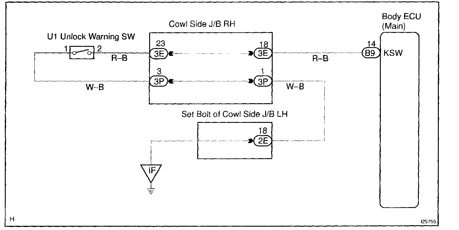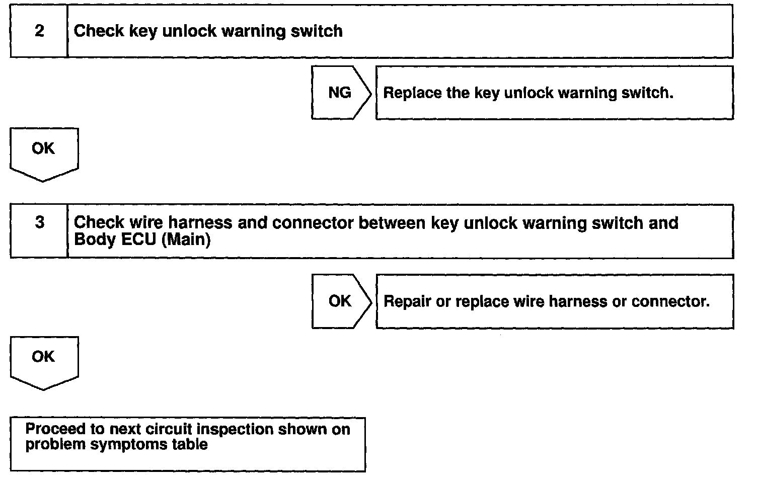 CIRCUIT DESCRIPTIONThe key unlock warning switch comes on when the ignition key is inserted in the key cylinder and goes off when the ignition key is removed.
