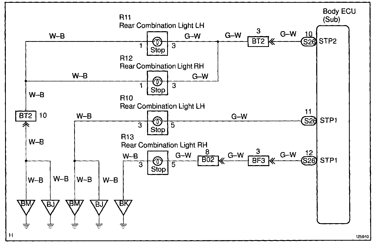 - A signal passed through "STP1 "terminal turns on the stop light on the right/left side on the body side.