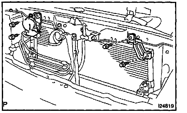 b. Lift up the condenser, then remove the 4 bolts and the 2 lower bracket.