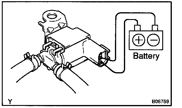 2. Connect the positive (+) and negative (-) leads from the battery to the VSV terminals for the EVAP.