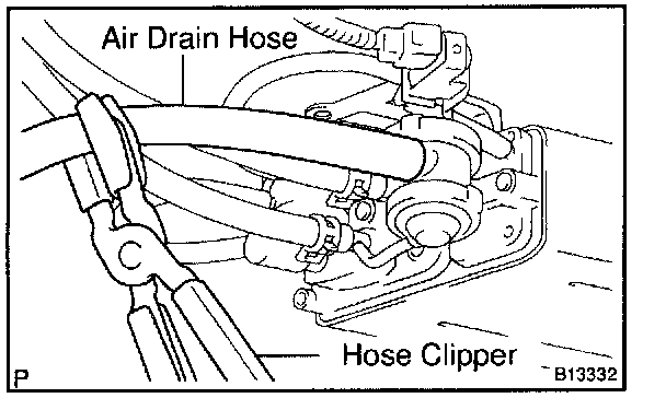 1. Close off the air drain hose at the marked position of the canister with a hose clipper or similar instrument.