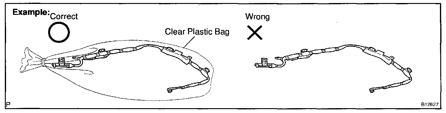 1. Always store a removed or new curtain shield airbag assembly in a clear plastic bag, and keep it in a safe place.