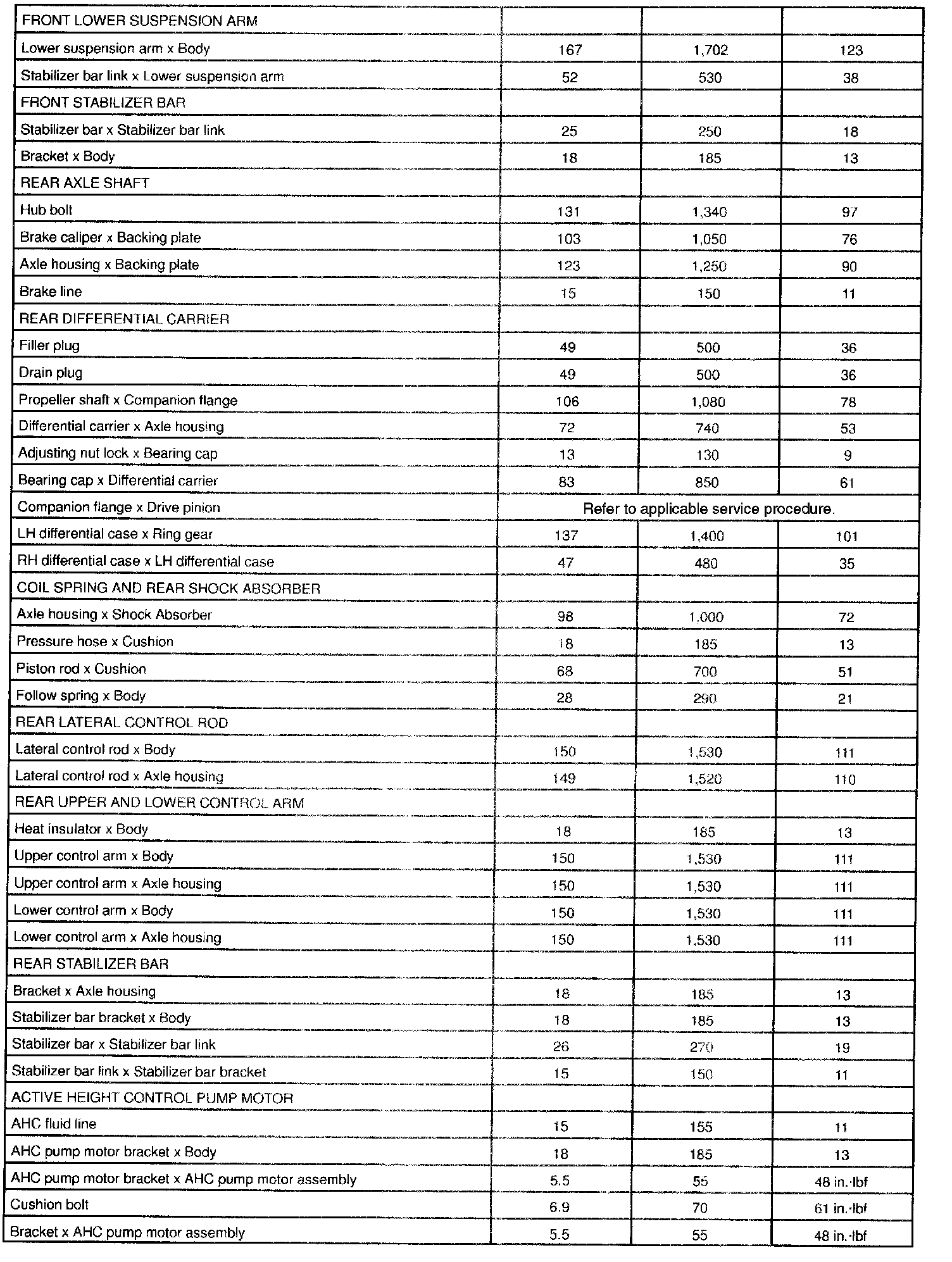 Torque Specification