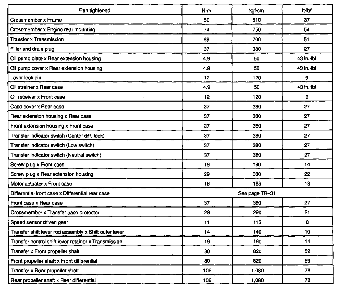 TORQUE SPECIFICATION