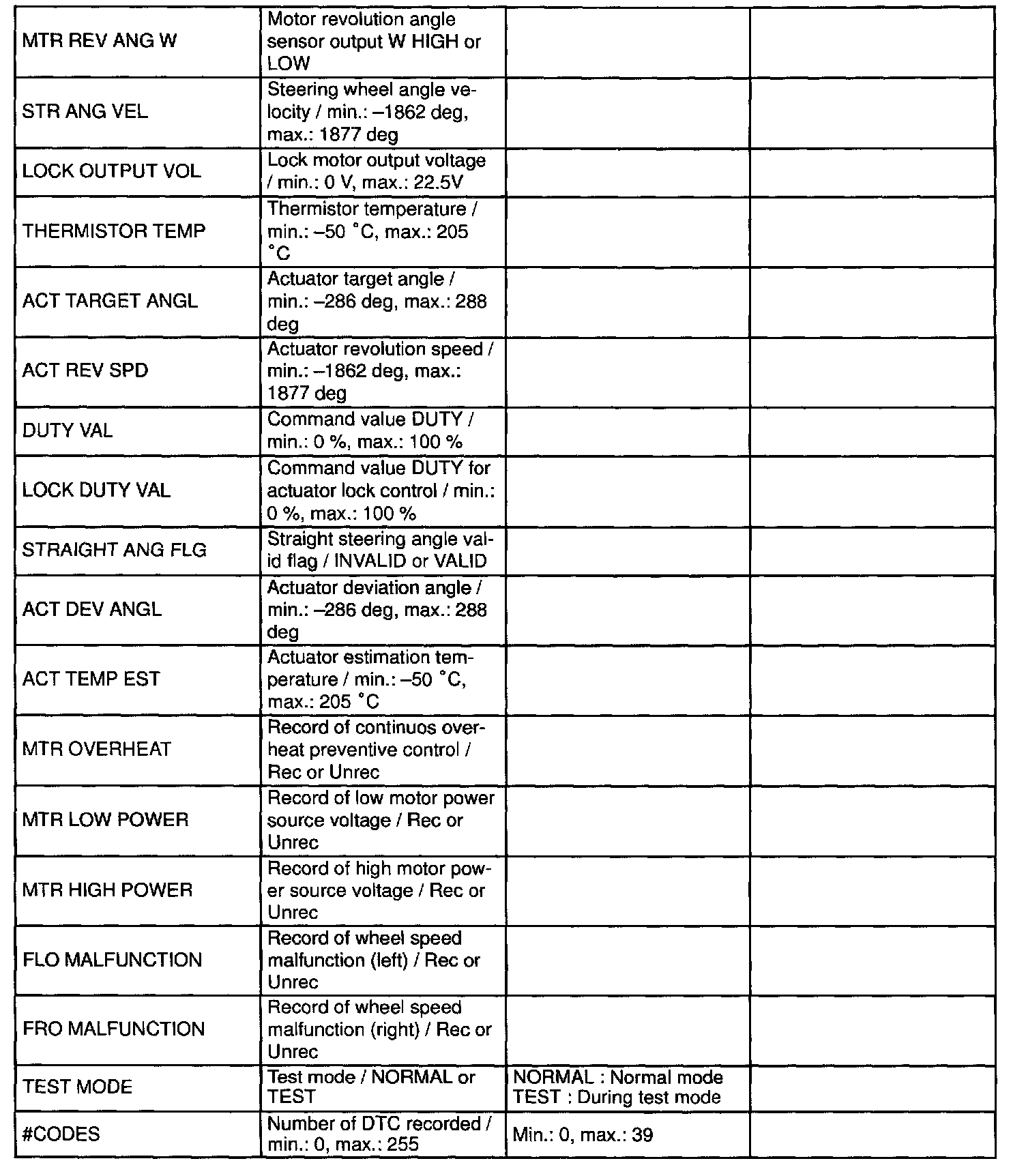 Normal Scan Data Values