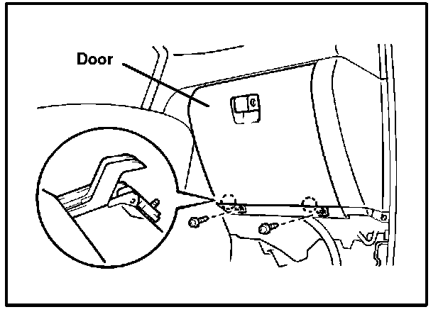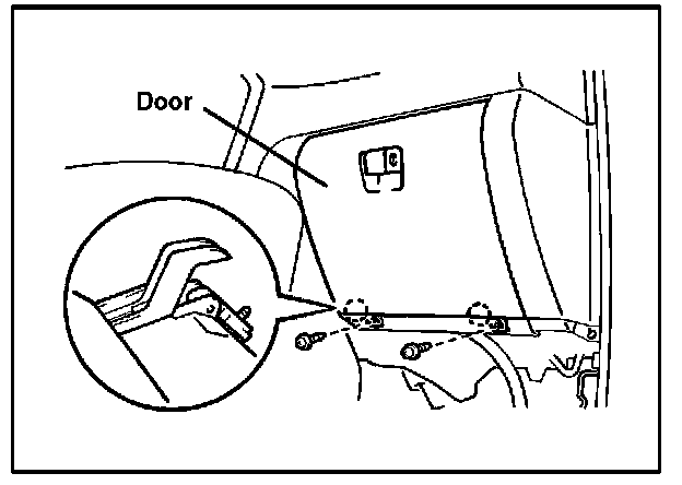 A. Remove the 2 screws and door as shown in the illustration.