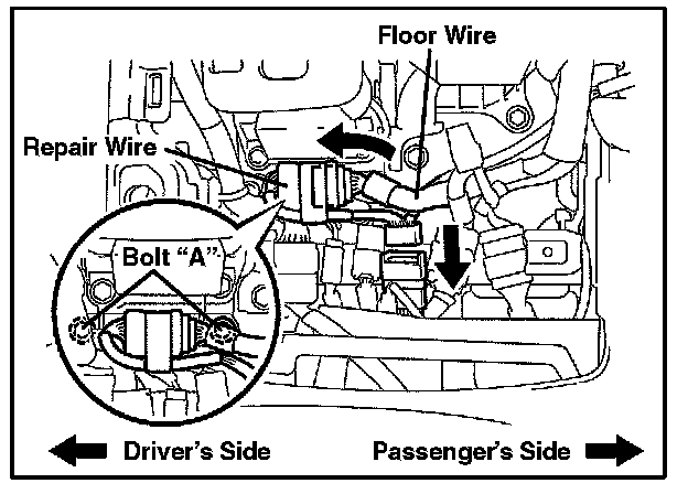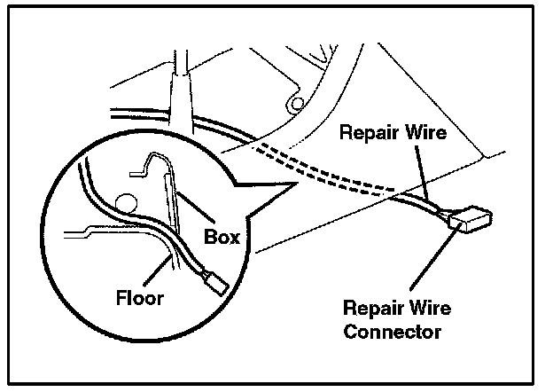 A. Run the repair wire connector below the front console box to the passenger seat, as shown in the illustration.