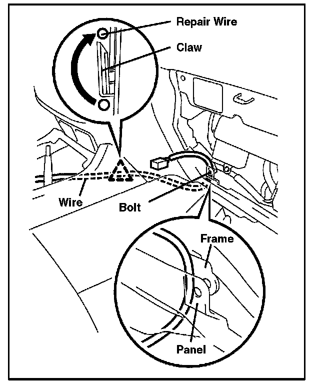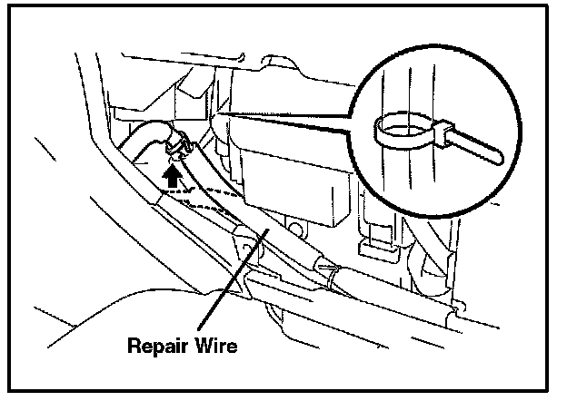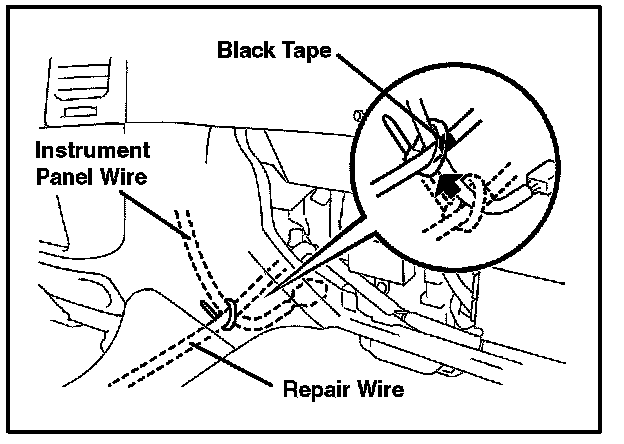 ^ The repair wire should pass between the instrument panel and instrument frame.