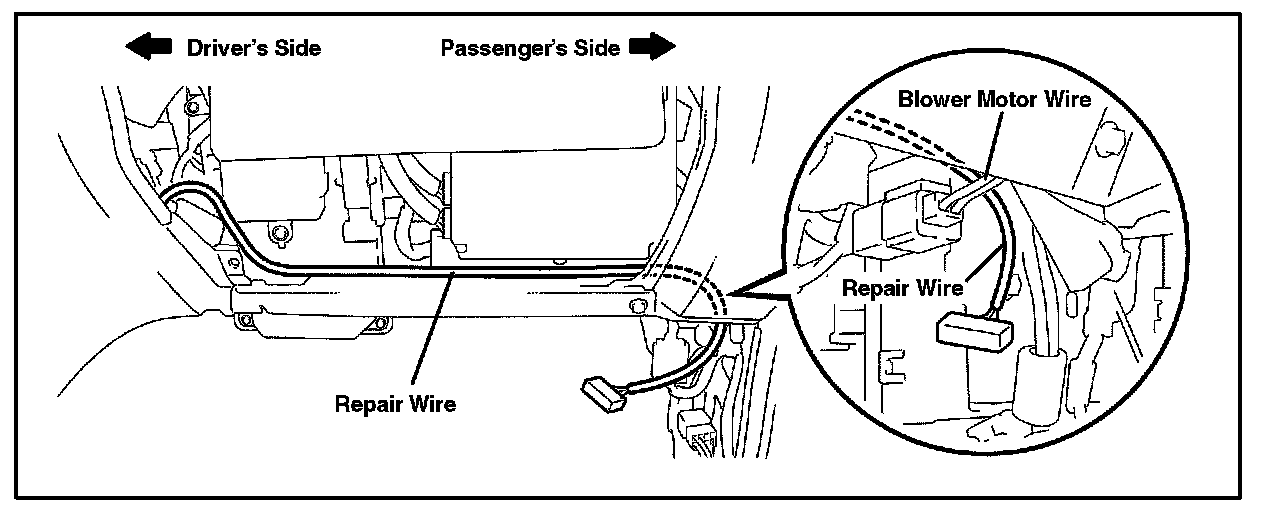 ^ The repair wire should run above the blower motor wire.