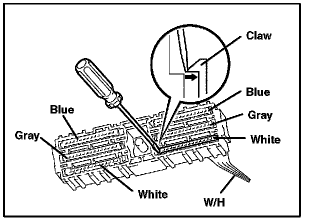 I. Using the taped screwdriver, remove the terminal from the repair wire connector, as shown in the illustration.