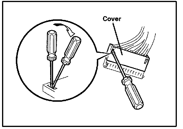 F. Using the taped screwdriver, remove the block connector cover as shown in the illustration.