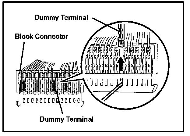 G. Using the taped screwdriver, remove the sixth dummy terminal from the right, as shown in the illustration.