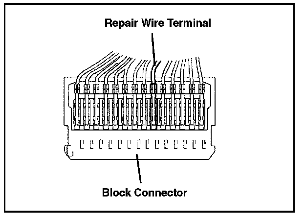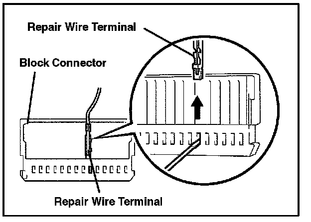 J. Insert the repair wire terminal to the block connector, as shown in the illustration.