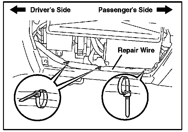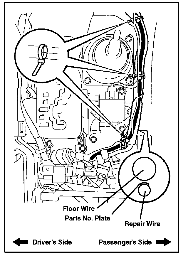 ^ The repair wire's part number plate should be facing the floor wire to prevent interior noise.