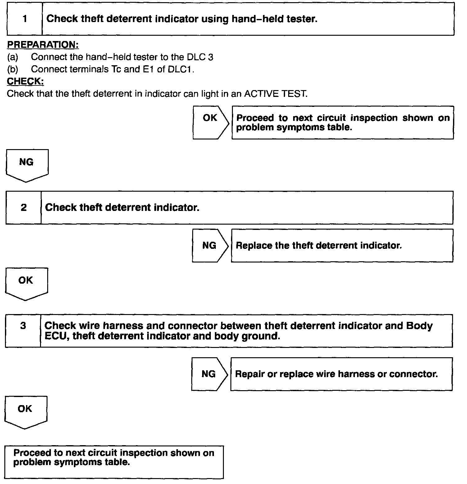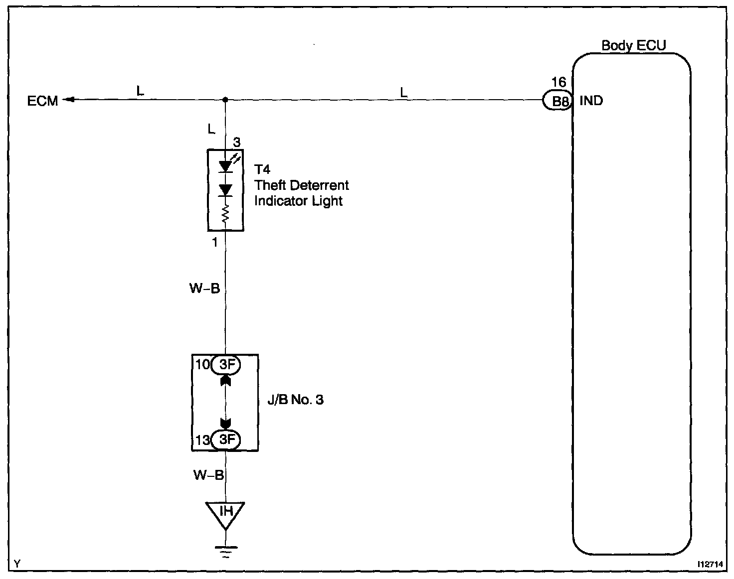 This theft deterrent indicator is connected to the ECM and outputs the key judgment of the immobilizer.