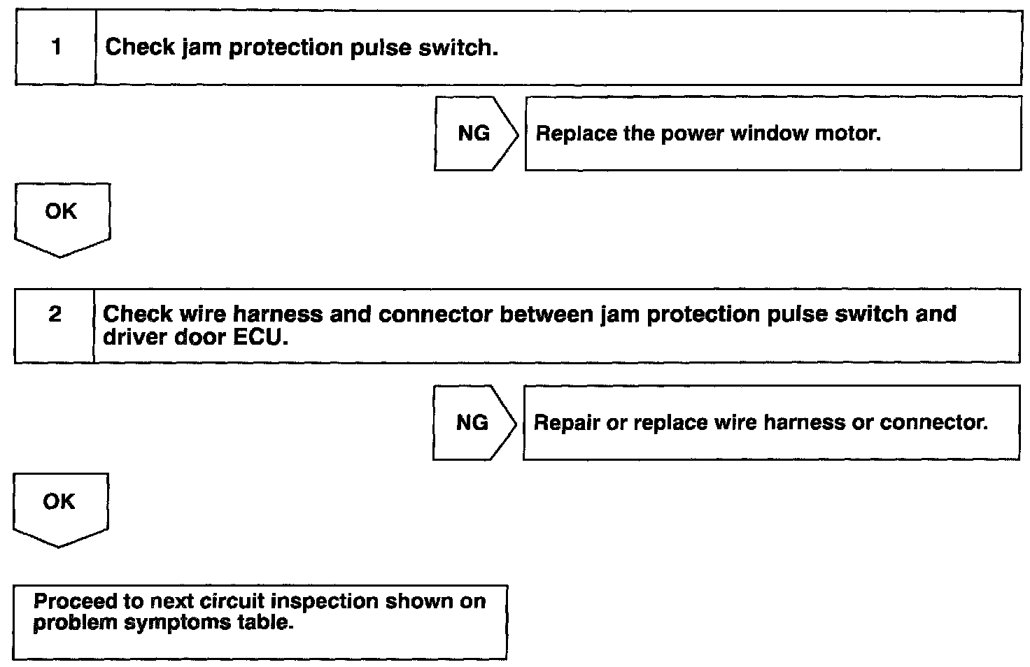 CIRCUIT DESCRIPTIONJam protection pulse switch is built-in the power window motor. Pulse switch outputs ON/OFF pulse when the motor rotates.