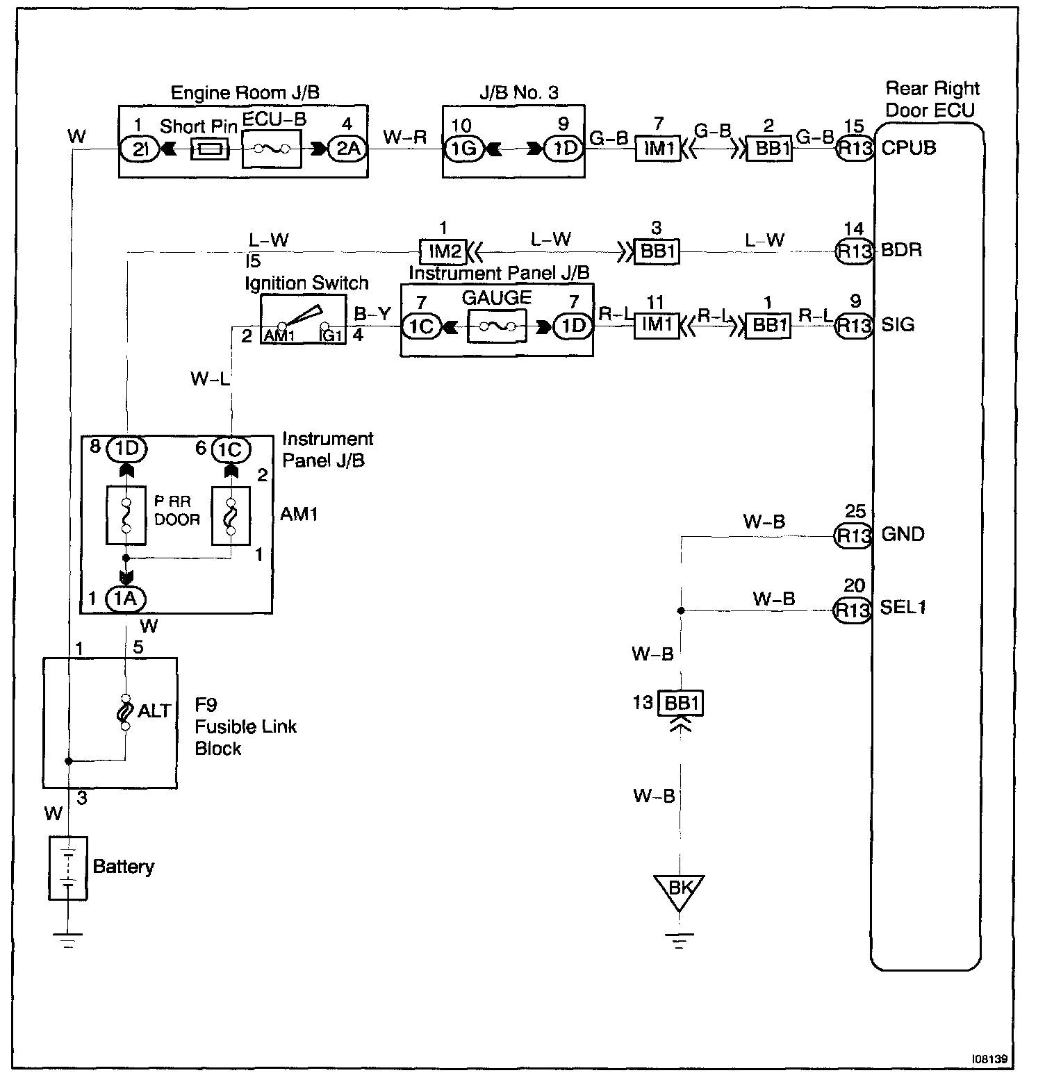 This circuit provides power to operate the rear right door ECU.