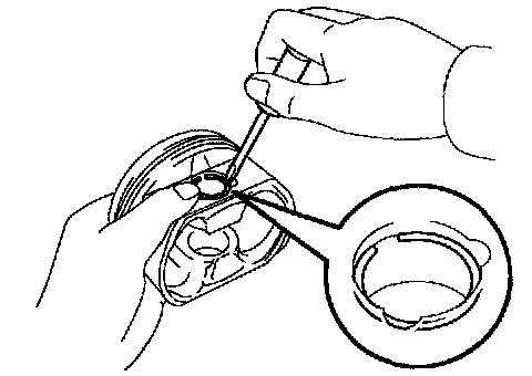e. Using a small screwdriver, install a new snap ring on the other end of the piston pin hole.