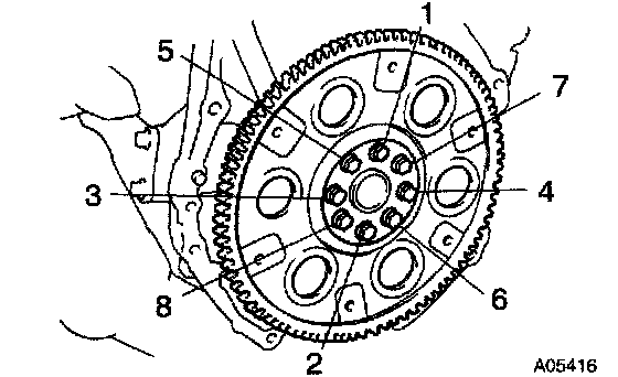 c. Install and uniformly tighten the 8 bolts in several passes, in the sequence shown.