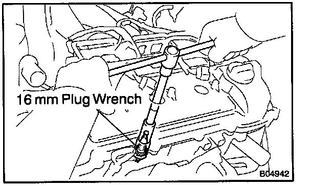 2. Using a 16 mm plug wrench, remove the spark plugs.