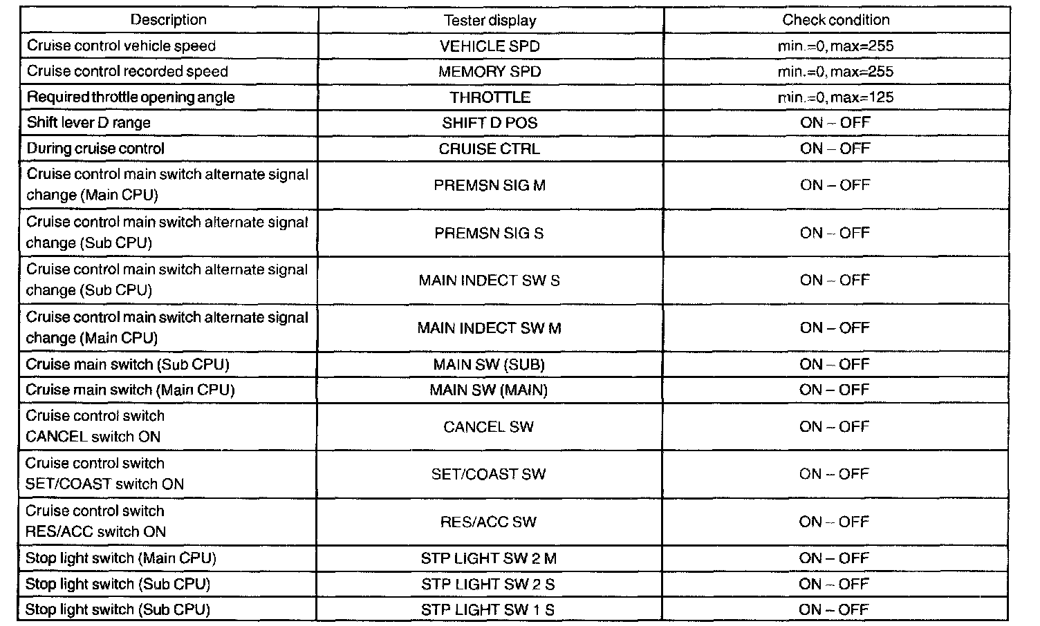 DATA LISTCRUISE CONTROL (ECM):