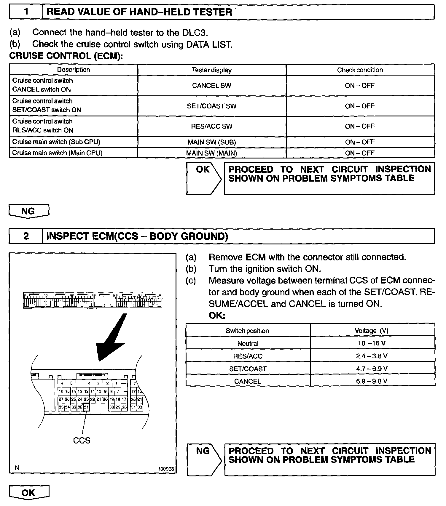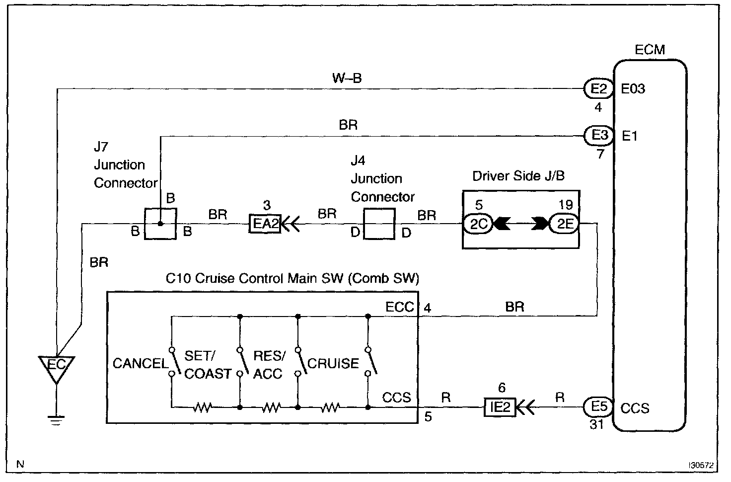 This circuit carries the SET/COAST, RESUME/ACCEL and CANCEL voltage signals to the ECM.