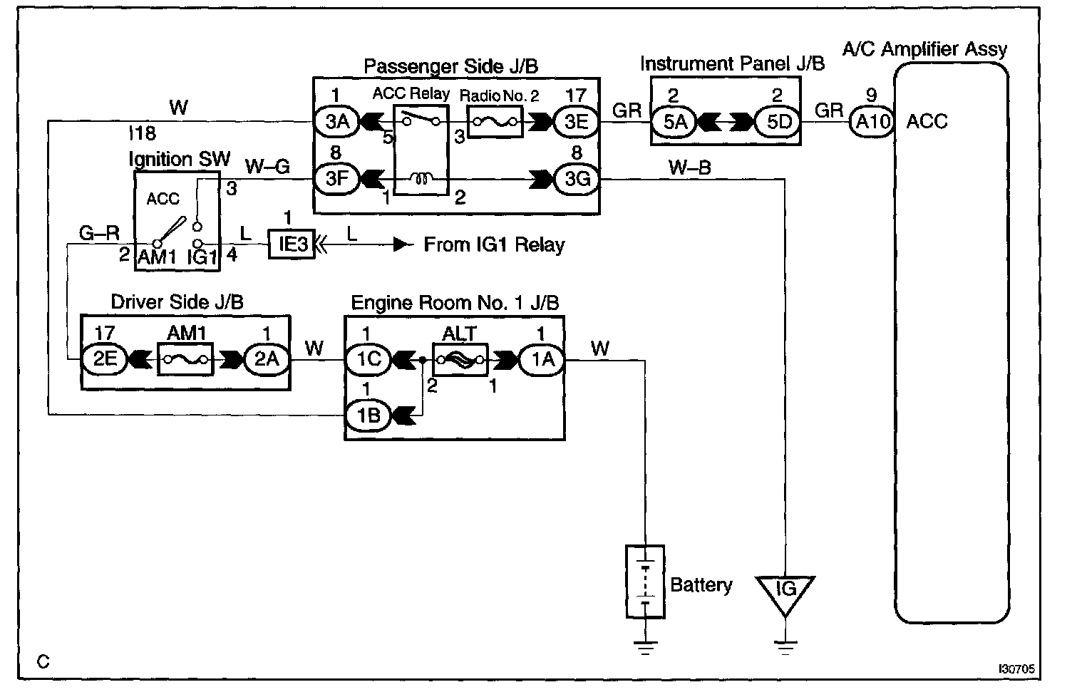 This circuit supplies power to the A/C amplifier assy for the clock light.