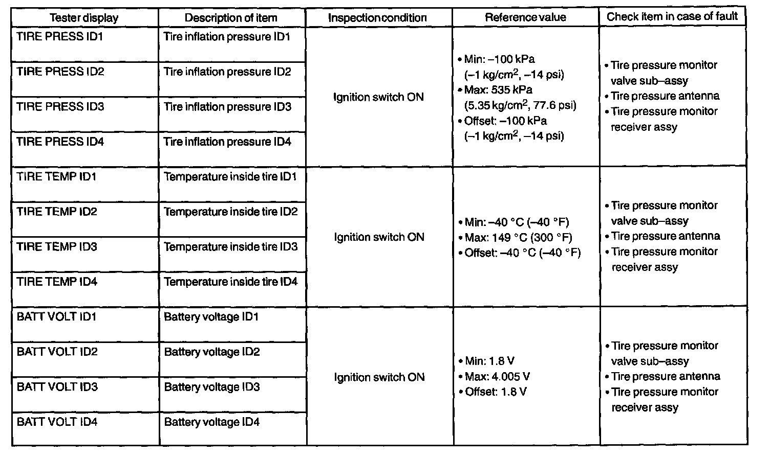 Reference Value of ECU Data
