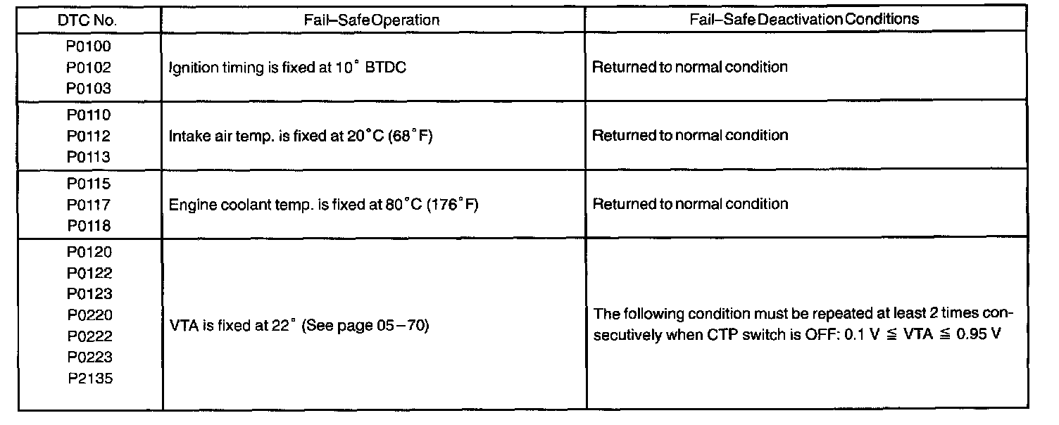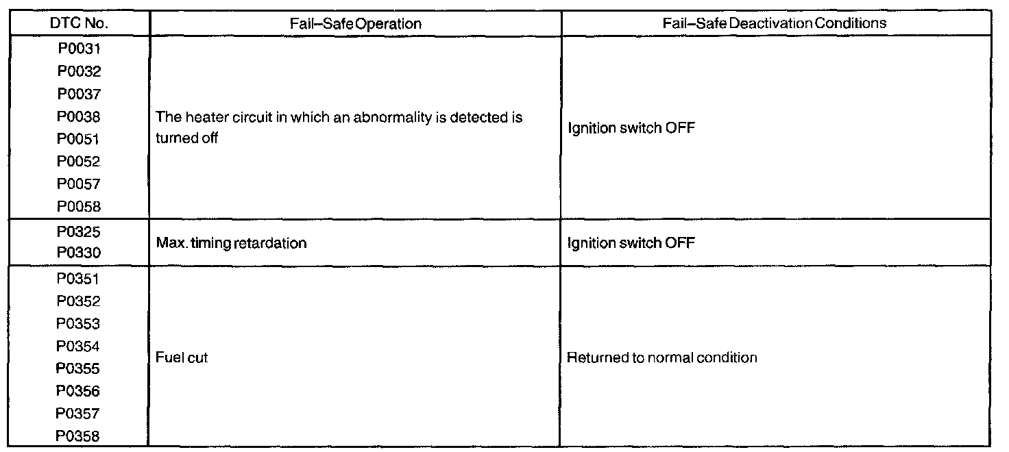 If any of the given codes is recorded, the ECM enters into the fail-safe mode.