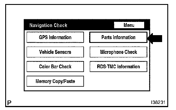 3. Select "Parts Information" from the "Navigation Check" screen.