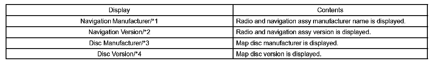 - This mode displays product information on the radio and navigation assy and discs.