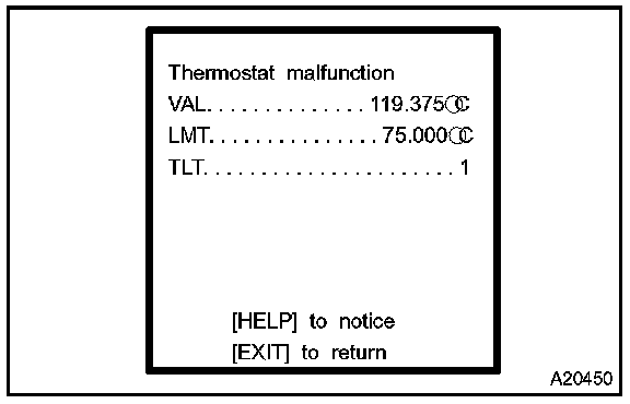 - TEST VALUE indicates the detection parameter value (Example: P0128 Thermostat Malfunction = Engine coolant temperature) at the time of malfunction (or normal) judgement is done.