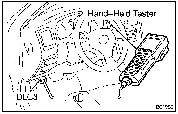 1. Connect the OBD II scan tool or the hand-held tester to the DLC3.