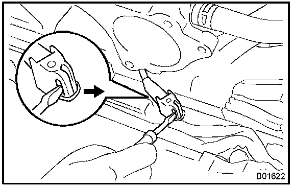 1. Using a screwdriver, lift up the lock claw and disconnect the holder from the ignition coils.