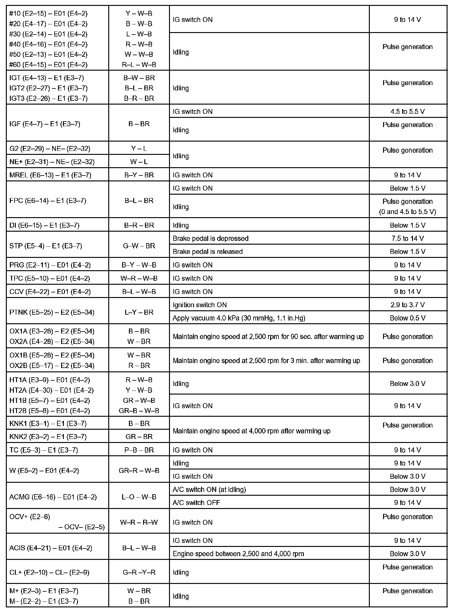 Pinout Values and Diagnostic Parameters