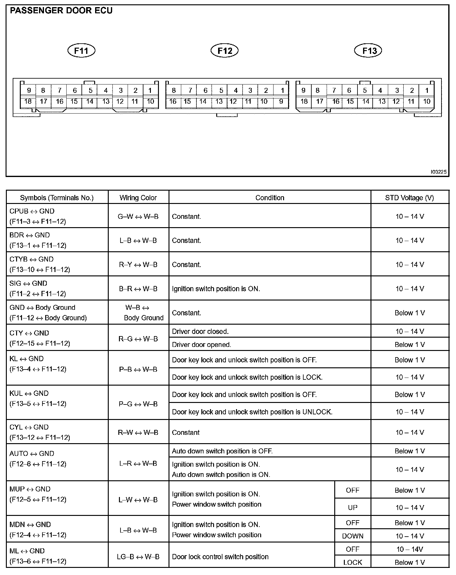 Pinout Values and Diagnostic Parameters