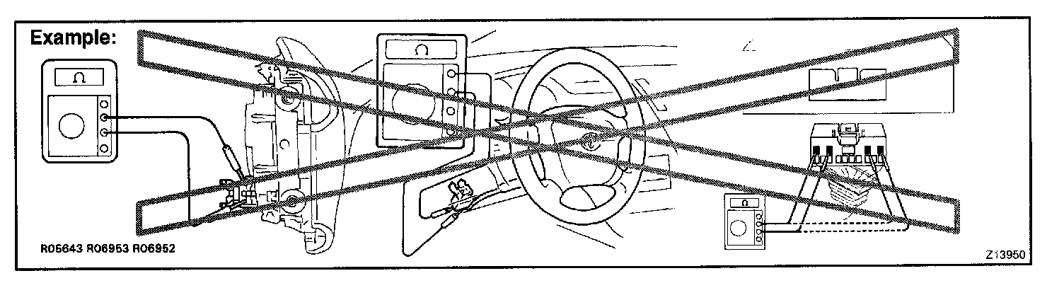2. Never measure the resistance of the airbag squib (This may cause the airbag to inflate, which is very dangerous).