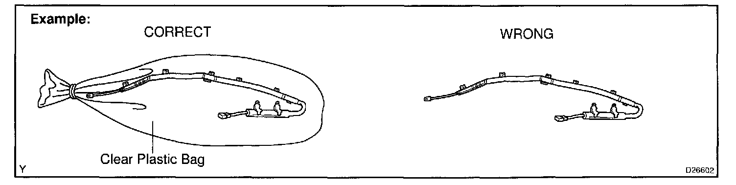 1. Always place the removed or new curtain shield airbag assembly in a clear plastic bag, and keep it in a safe place.