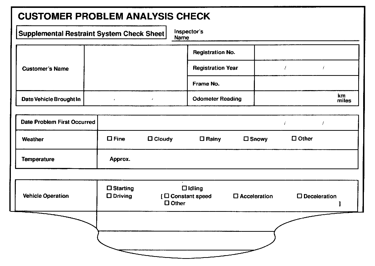 (Sample) Supplemental restraint system check sheet.