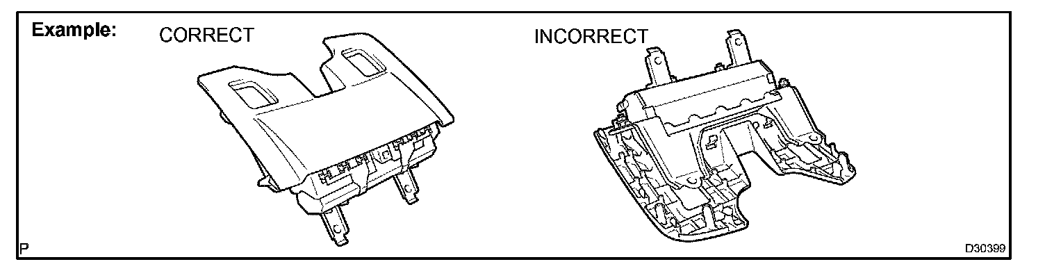 1. Always store a removed or new instrument panel lower airbag assembly with the airbag inflating direction facing upward.