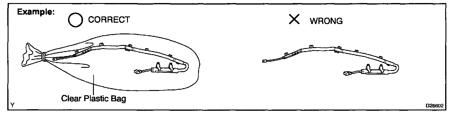 1. Always store the removed or new curtain shield airbag assembly in a clear plastic bag, and keep it in a safe place.