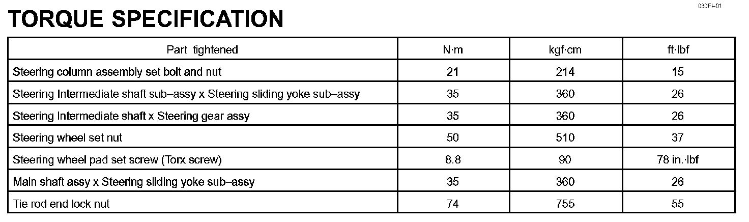 Steering Column - Torque Specification: