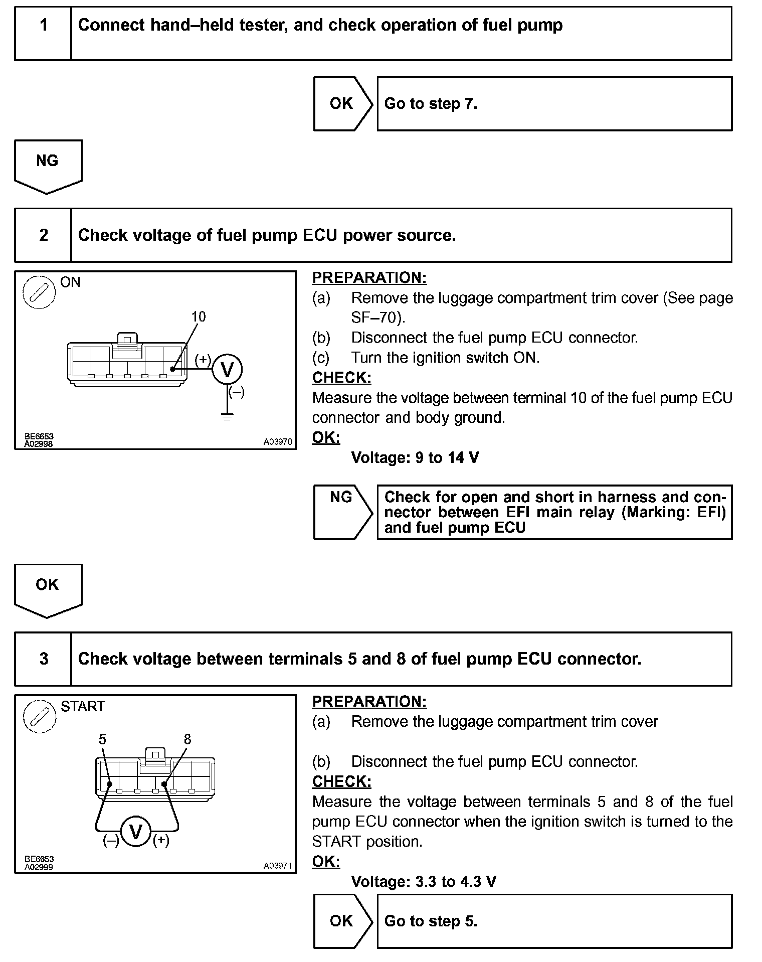 The fuel pump ECU then outputs Mid voltage (about 10 V) to the fuel pump so that the fuel pump operates at medium speed.