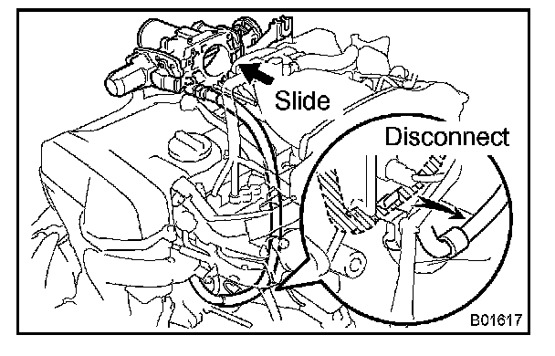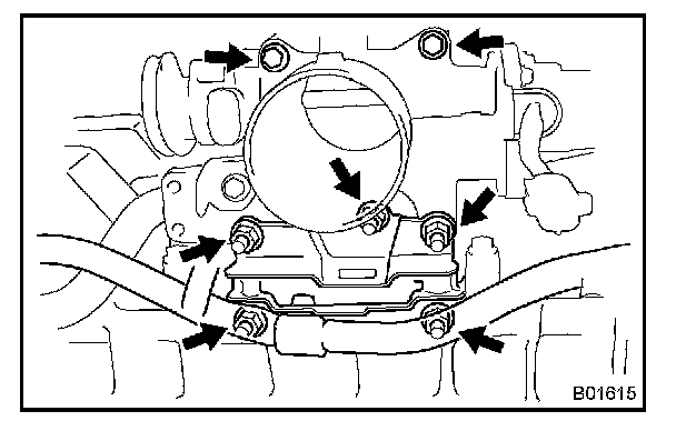 3. DISCONNECT THROTTLE BODY FROM INTAKE AIR CONNECTOR WITHOUT DISCONNECTING WATER BYPASS HOSES