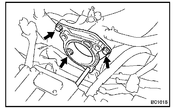 f. Remove the 2 bolts and nut holding the throttle body to the intake air connector.