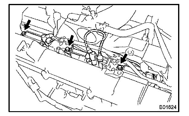 c. Remove the 3 bolts, the ignition coils and high - tension cord set assembly.
