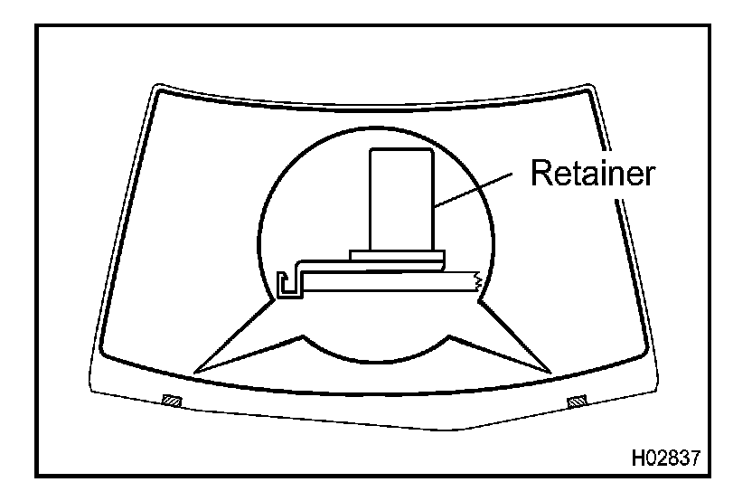 d. Attach new retainers to the glass with the ceramic notch on the glass aligned with the retainers, as shown in the illustration.